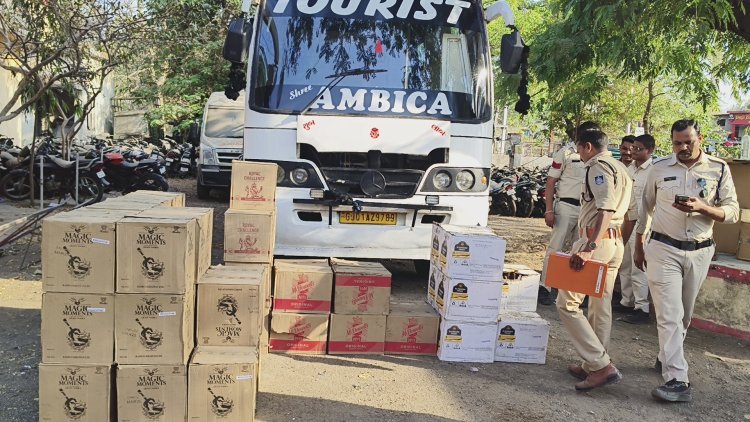 टूरिस्ट बस में सीट के नीचे रख गुजरात जा रही थी अवैध शराब, पुलिस ने करीब 82 पेटी अग्रेंजी शराब पकड़ी, शराब की तस्करी करने वाले 2 लोग गिरफ्तार