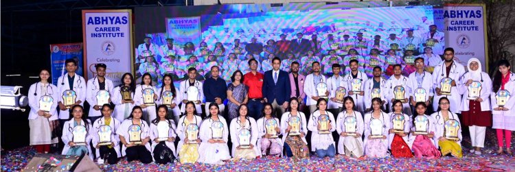 अभ्यास ने नीट में चयनित विद्यार्थियों को सम्मानित कर मनाया विजयोत्सव, 600 से अधिक अंक लाने वाले विद्यार्थियों को संस्था की ओर से 1 लाख का चेक प्रदान किया गया।