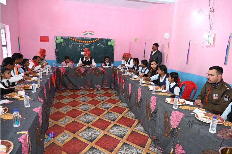 गणतंत्र दिवस पर ग्राम सागोद में मुख्य अतिथि कैबिनेट मंत्री चेतन्य काश्यप ने बच्चों के साथ किया भोजन