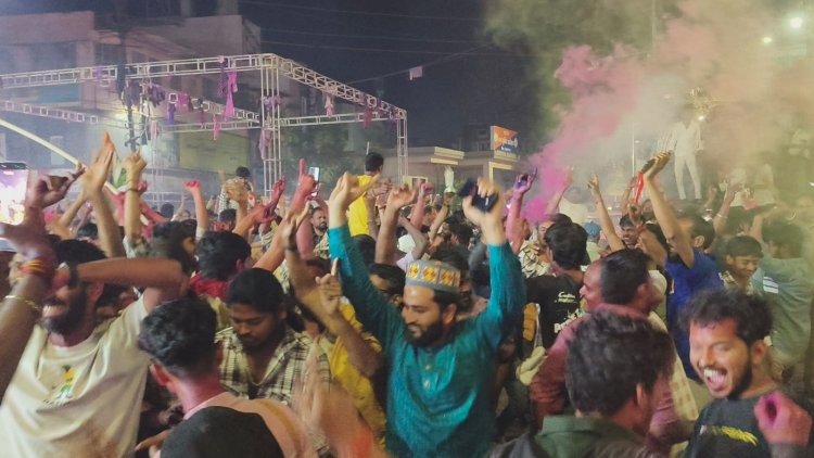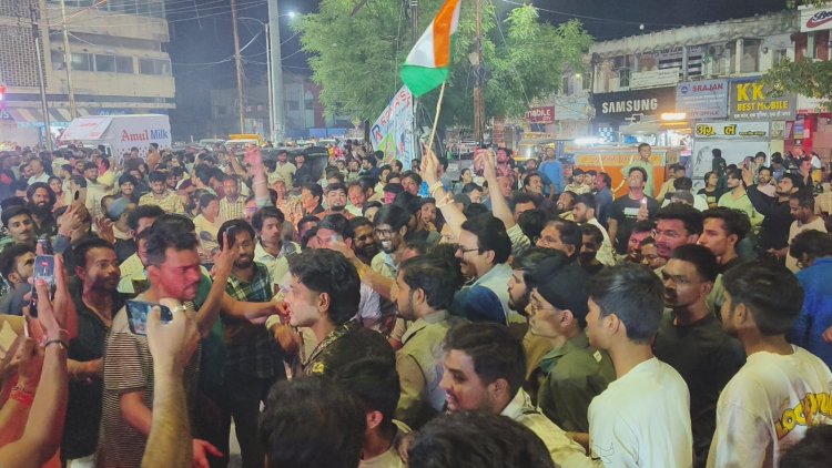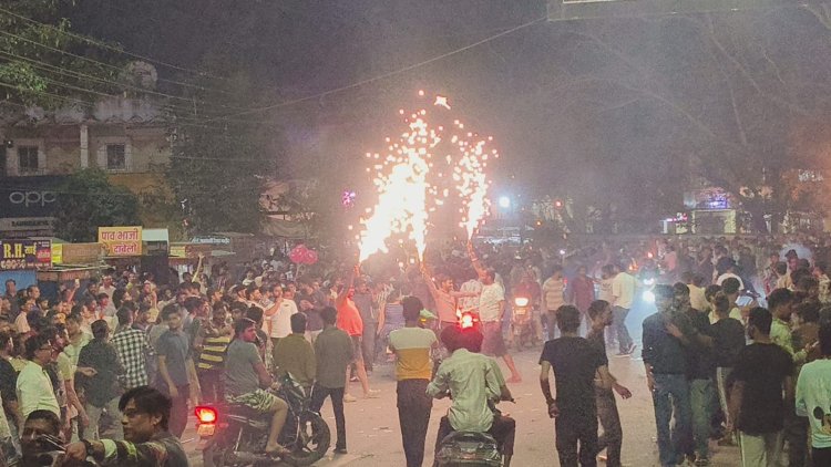 वल्र्ड कप की जीत ने रात में भी मनवा दी रंग पंचमी -आतिशबाजी के बीच रंगो की फुहार ने होली-दीवाली जैसा नजारा दिखाया, जीत के जश्न में तिरंगा हाथ में लेकर झूमे युवा